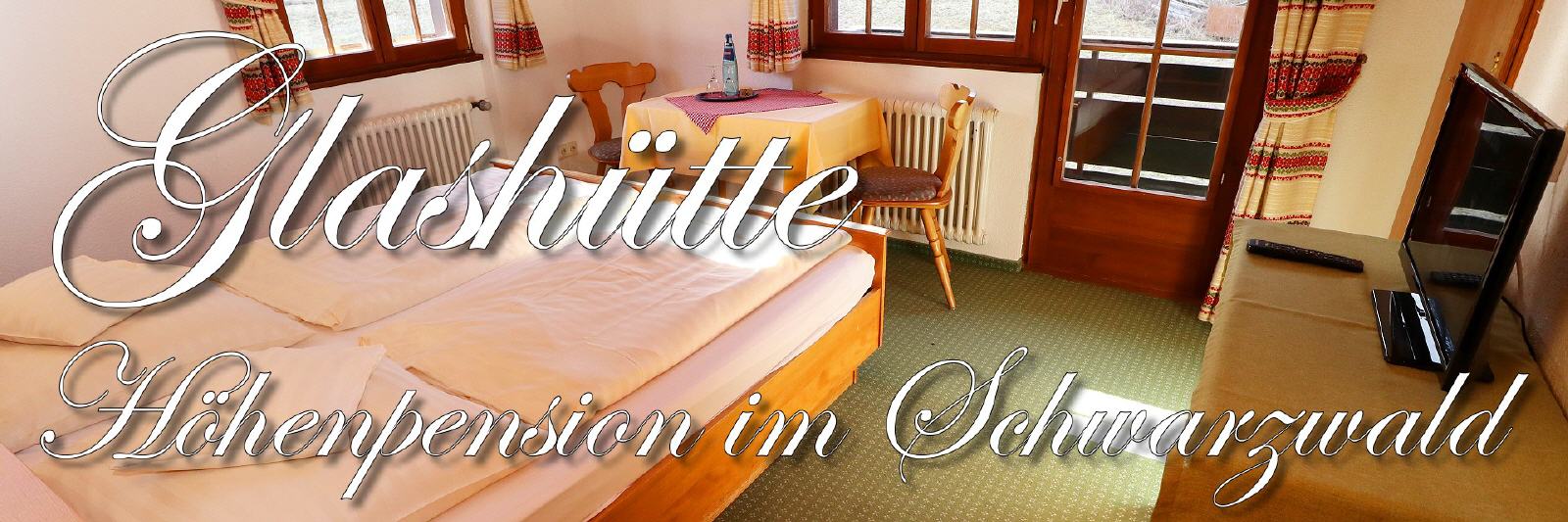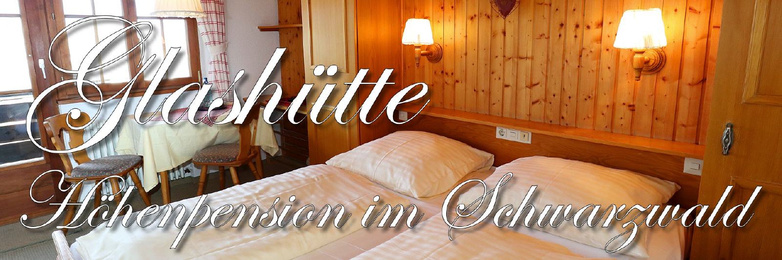 In der Höhenpension Glashütte erwartet Sie ein ruhiger und erholsamer Urlaub im Herzen des Hochschwarzwaldes. Wir bieten 5 gemütlich eingerichtete Doppel- und ein Einzelzimmer, ausgestattet mit Bad (Dusche / WC / Föhn) und Sat-TV, teilweise mit Balkon. Mit der Gäste- und Konus-Karte, die stets inklusive ist, erhalten Sie Vergünstigungen auf Eintrittsgelder und nutzen öffentliche Verkehrsmittel kostenfrei. Sonntags ist keine Zimmerreinigung. - Die Preise gelten pro Person und Tag. Sie sind inklusiv Kurtaxe und Konus (freie Fahrt mit allen öffentlichen Verkehrsmitteln). Keine Haustiere.